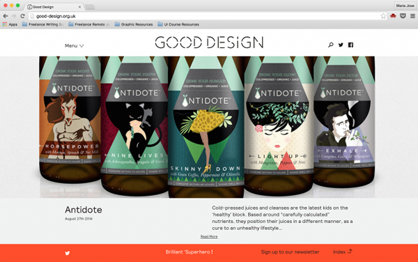大自然会更加醒目。这个名为 Good Moods 的网站将网站名称用超大的字体展现在网站首页上,简直就是一个直接大胆的“你好”,即使在相对出位的这类博客设计当中也是相当少见的手法。
