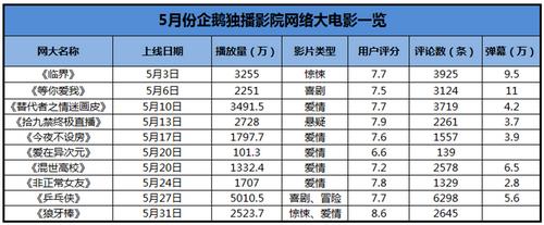 除爱情题材外,企鹅独播影院多元布局网大题材,悬疑、惊悚、喜剧、奇幻、冒险类型皆有涉猎,在5月27日上线的大体量高标准视效网络大电影《乒乓侠》,其制作团队由中美法海外背景顶尖电影视效专家组成,导演陈厦曾任《九层妖塔》特效总制片,拥有丰富的院线电影视效制作经验,整部片子的特效制作水准皆向国际标准看齐,加之二次元题材的吸睛要素,一经上线便强势引发网友普遍关注热议,三小时专辑播放量便冲破1000万,登上微博热门电影榜第二位!截至目前,播放量已突破5000万,堪称“国内首部大体量视效网络大电影”的成功之作。此外,通过10部网大的用户评分显示,均是突破7分的口碑之作,整体呈现播放与口碑齐飞、质量与水准共存的企鹅独播影院,正日益彰显网大新标杆的大平台形象。