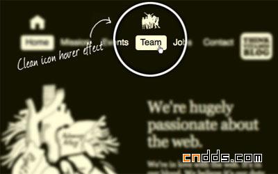 图标切换效果在web2.0网页设计里面无论是否需要被大量、胡乱的应用,并且成为一种趋势。并不是所有的都是不好的,web2.0里用的不好的原因是过度使用、业余使用造成的。在大多数情况下,适当的应用图标切换按钮是相当有效的。Carsonified网站在导航上就运用了单色、简洁的图标切换效果,并且于他的网站整体感觉想吻合。