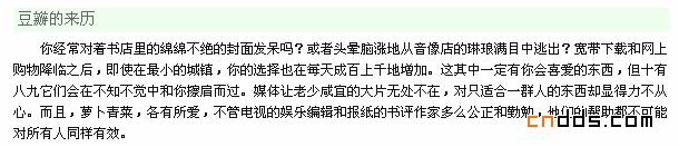 豆瓣的文案朴素、精致,结构清晰。关于豆瓣→豆瓣的来历→参与豆瓣。以第一段为例,如图04。