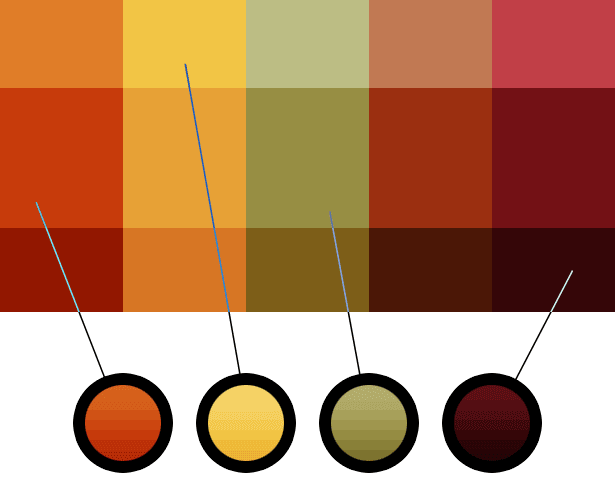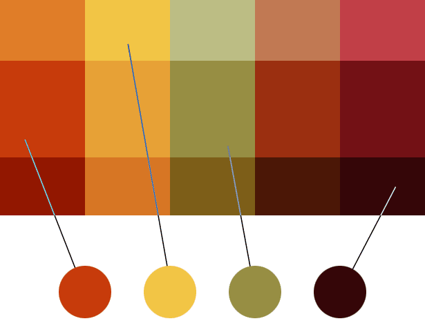 设计师通过选择感觉很好的暖色调开始的.没有什么逻辑性的,只是一个模糊的目标”秋天”,还有她的感觉.