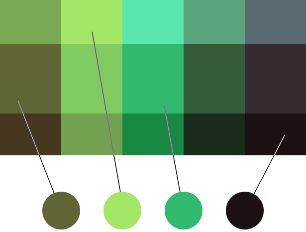 它提供给设计师15种颜色可以选择.她选择了具有一定范围和色相的4种.这些颜色与白色是对比的