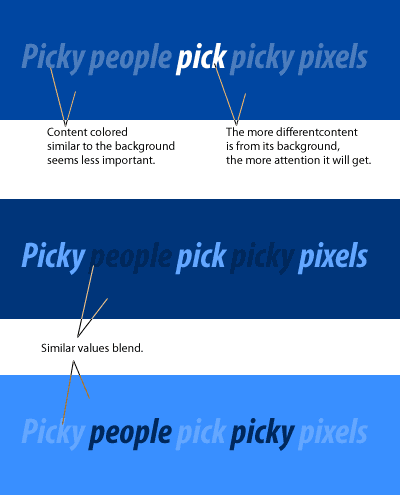 色彩具有三个属性:色相,饱和度,色值(有时会叫做明度)(译者注: 想深入了解的话可以读这个:关于颜色的基本理论)