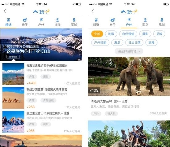 通过用户大数据分析和流量定向分发,6月21日,25%用户的阿里旅行App及H5首页上,出现了崭新的“玩+”频道。眼下,所以用户通过阿里旅行App和手机淘宝App选择“阿里旅行”,都可以看到“玩+”频道了。