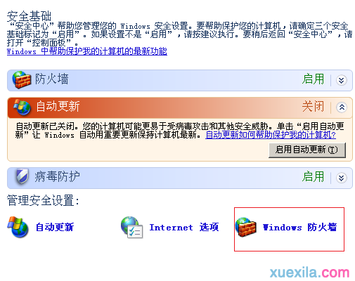 点击左边菜单中的 启用或关闭Windows防火墙: