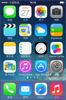 第一步:打开iOS终端主界面,选择并点击 设置 菜单,如下图所示: