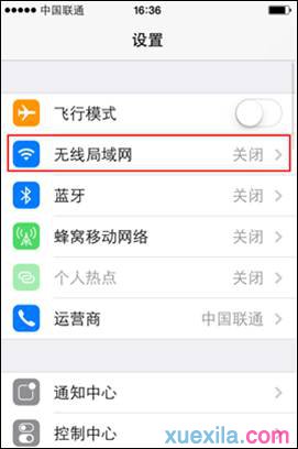 第二步:在 设置 主界面,找到 无线局域网。如下图所示: