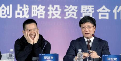 2017年1月15日下午,一身运动装、牛仔裤的贾跃亭和西装革履、戴着金丝边眼镜的融创董事会主席孙宏斌的手握在了一起。这两位刚刚认识不久的山西老乡一起制造了一个跨界“大新闻”:融创以总计150亿元的代价,获得乐视网8.61%股权、乐视影业15%股权、33.5%的乐视致新股权。交易完成后,融创将成为乐视网的第二大股东。