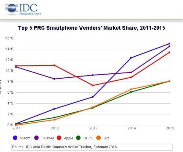 于是,它只用了 4 年时间,就在手机市场占有率上追平了华为。