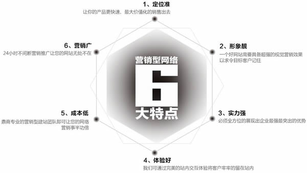 做营销型网站的目的就是为了帮助企业成交更多的客户和品牌的推广,所以网站的整个策划、设计与内容的布局,要考虑到客户体验度,网站的定位要非常明确,要让客户网站是做什么的,在于行业中有什么样的优势,还能很好的把公司的优势、产品的卖点展示出来,当然少不了公信力的展示,这是为了让客户更有信赖感,让客户有产生对话的基础,所以网站定位第一信息一定要让客户看到的第一眼就知道企业是什么产品,有一个什么样的优势;网站的整体不仅要大气,还要体现出高端,这样可以让客户进一步感受到企业的规模等等;