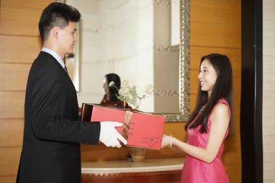 据悉,今年的第一单是在 6 月 18 日当天送出,赵女士 17 日晚 10 点左右下单了价格为 19800 元的PRADA包包,第二天一早,穿着合体的黑色西装、打着灰色领带的帅哥,手上还戴着干净的白手套的京东小哥上门送货。