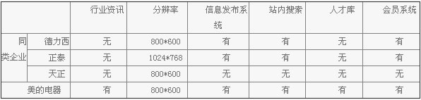 上述为XXXX电器行业网站和其它一些大电器网站技术参数情况,从中可以看出,现有的XXXX电器行业网站网站还需要更好的行使其职能。一
