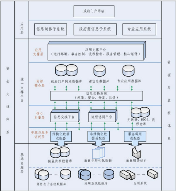 基础资源层包括各一些相关联单位的信息子系统数据库、应用系统数据库和应用系统。
