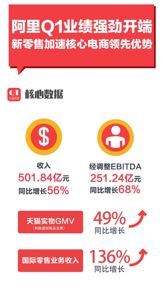 8月17日公布的阿里巴巴集团2018财年Q1财报显示,天猫实物商品的交易额同比增长达49%。如此大的体量上还能保持快速增长,与天猫服饰、快消食品、3C数码手机等核心行业增长强劲有关,新零售战略快速推进下,天猫显示出增长惊人爆发力与长期耐力。